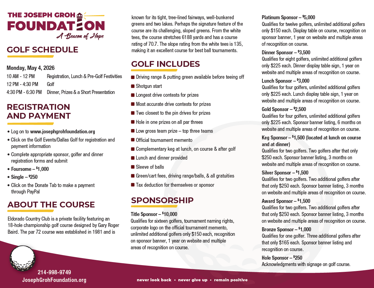 2026 Joseph S. Groh Foundation Golf Tournament