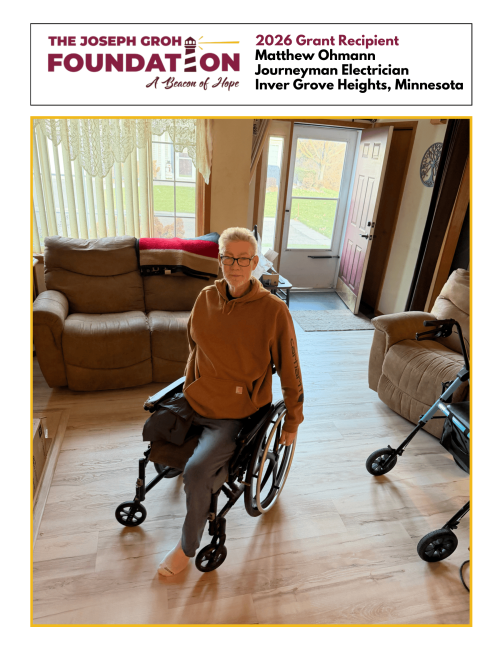 For nearly four decades, Matthew Ohmann dedicated his life to the electrical trade, building, leading, and contributing to the safety and infrastructure of his community. Today, as a recent grant recipient of The Joseph Groh Foundation, Matthew’s story reflects both the challenges of life after a career-ending disability and the resilience that continues to define him.
